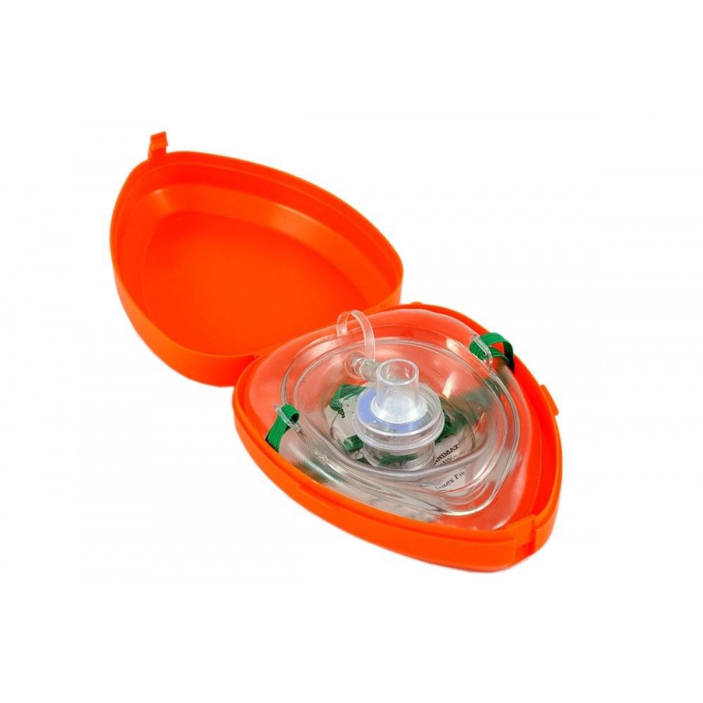 Este resucitador de bolsillo para RCP tiene una alta eficiencia y baja resistencia a la válvula de una vía que reduce al mínimo la posibilidad de contaminación cruzada. Sus 15mm de diámetro exterior del conector se puede conectar a cualquier sistema de ventilación estándar y equipo de oxígeno. Creada para su uso normal en adultos, e invertido para los bebés / niños. Ergonómico en forma de máscara con suave colchón de aire de libre de fugas de rendimiento, agarre fácil. Filtro desechable para evitar la contaminación cruzada. Correa elástica verde mantiene la máscara en el lugar en el paciente. Libre de látex. Manual de instrucciones incluido. Estuche de bolsillo